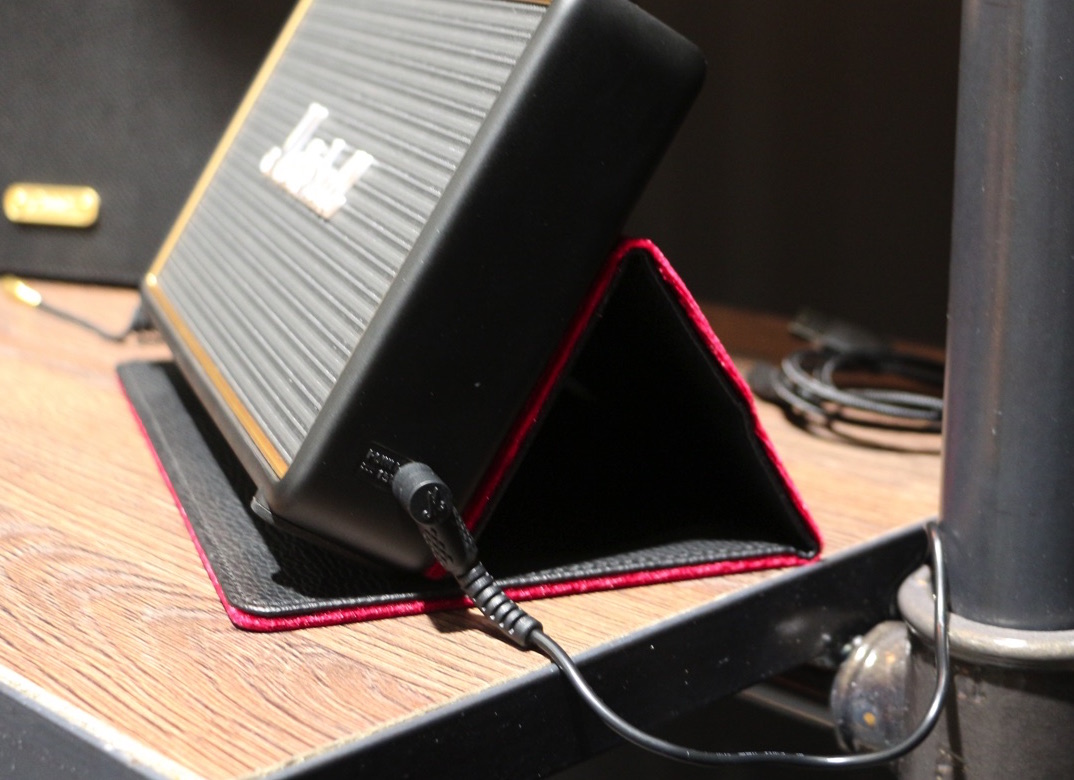 Marshall ha già nel suo catalogo lo speaker portatile Kilburn con 20 ore di autonomia ma le dimensioni non permettono il trasporto dentro ad uno zaino: il nuovo modello Stockwell è invece molto compatto, pesa 1,2 Kg ed è dotato di una custodia opzionale che vedete nelle immagini. I potenziometri di volume sono inoltre “retraibili” per diminuire l’ingombro durante il trasporto.