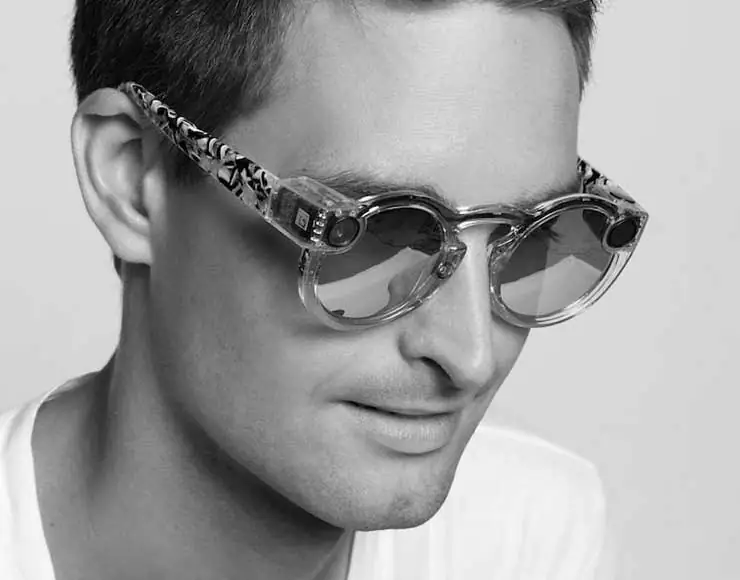 Avendo allargato il suo campo d’azione, un po’ come Apple che da Apple Computer è diventata “Apple Inc.”, l’azienda ha nel frattempo cambiato denominazione in “Snap, Inc”. Spiegel la presenta come una “camera company” e non più come una “social media company”. Il giovane amministratore delegato dice di avere studiato gli albori di Kodak e Polaroid e in che modo queste aziende hanno portato le fotocamere al pubblico. Il dispositivo indossabile sarebbe stato testato da lui stesso per un anno in varie occasioni, incluse escursioni con la fidanzata (la modella Miranda Kerr) sul Big Sur.