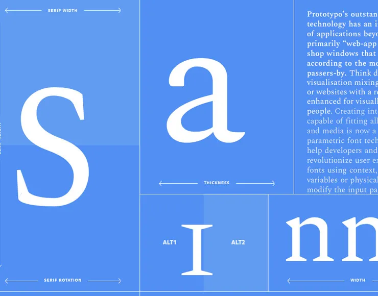 “L’apertura di una nuova era nel design dei caratteri, la tecnologia parametrica dei font permette di lavorare con caratteri responsive migliorando la creatività permettendo di esplorare nuove forme” si legge nel comunicato stampa di Prototypo. “La creazione di font intelligenti in grado di adattarsi a tutti gli usi e i media è ora una realtà”.