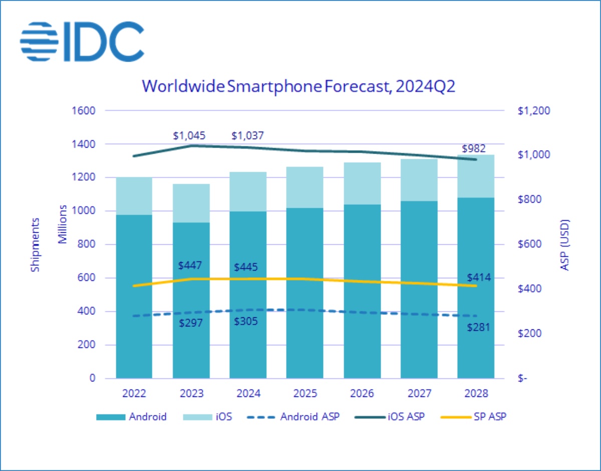 IDC prevede che la traiettoria di iOS migliorerà nel 2025, con una crescita del 4% anno su anno grazie a Apple Intelligence, aspetto che già desta molto fermento, prevedendo uno slancio per il prossimo anno, qualcosa che dovrebbe invogliare l’aggiornamento dei dispositivi.