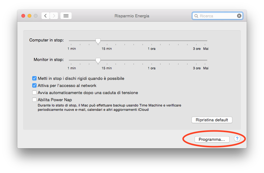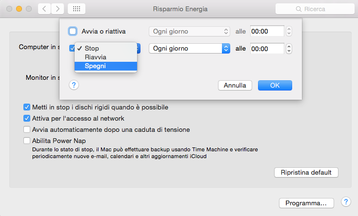 Come spegnere Mac automaticamente a orari e giorni stabiliti