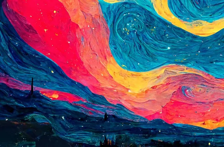 Ho creato questa immagine qualche tempo fa usando il generatore di immagini AI Midjourney, suggerendo dozzine di modifiche attraverso varie varianti di “Big Sur” e “Starry Night”: da lì ho iniziato a usare l’upscaling, ho regolato la nitidezza e ho apportato altre modifiche fino ad arrivare a questo risultato