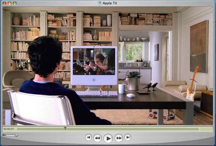 Il filmato promozionale, come accennato questa mattina, mostra un film (The School of Rock con Jack Black) che passa da un iMac ad un iPod e da qui ad un Tv a schermo piatto. La voce narrante descrive tutte le possibilità di visione offerte dalla tecnologia di Apple.