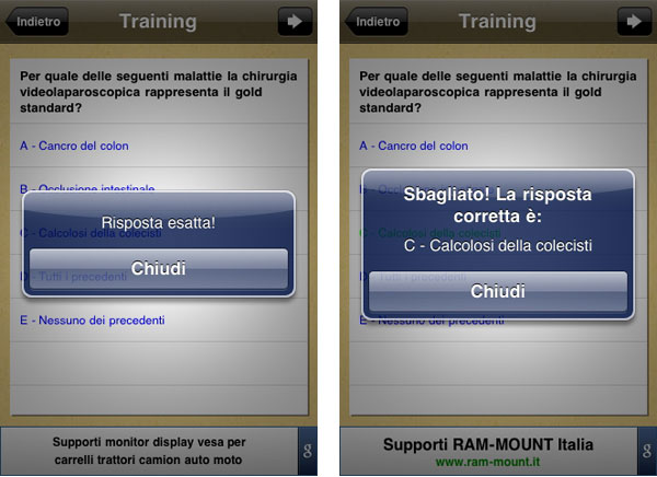 Il Training mostra delle domande con risposte multiple e fornisce un riscontro immediato sull’esattezza o meno della risposta scelta: un sistema estremamente valido per prendere confidenza con i numerosi quiz ministeriali.