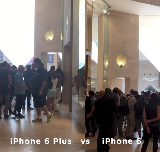 Abbiamo messo alla prova 6 e 6 Plus con la nostra speciale apparecchiatura di ripresa che permette di combinare i due smartphone e girare filmati con lo stesso soggetto, lo stesso movimento dell’operatore sul campo e lo stesso spostamento del sistema di ripresa durante l’operazione. Il risultato lo potete vedere nel filmato qui sotto girato nell’hotel che ci ospitava a Parigi e all’interno del centro commerciale annesso al Louvre.