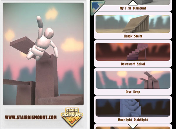 Per rendere il simulatore di cadute ancora più accattivante gli sviluppatori hanno realizzato un motore fisico molto realistico: i movimenti del manichino, i rimbalzi dopo le collisioni e ogni dettaglio è stato realizzato con una cura maniacale. Non stupisce così che Stair Dismount è risultato vincitore nella categoria Technical Achievement all’ultimo Independent Game Festival, la conferenza mondiale più importante nel settore dei giochi mobile e non solo.