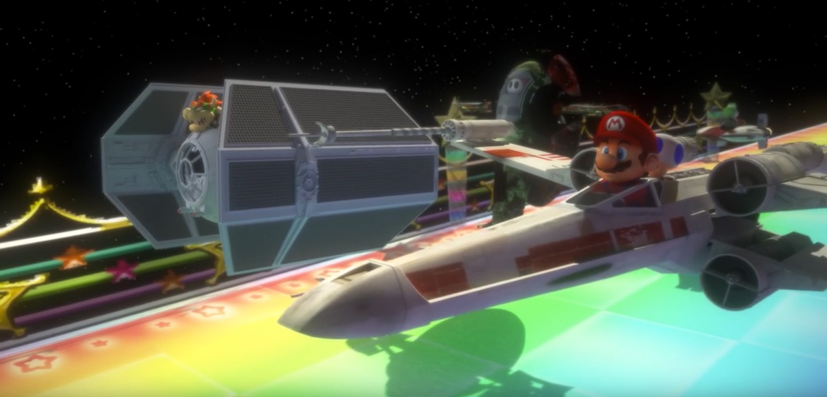 Vedere Mario che pilota un X-Wing come un ribelle, accompagnato dal fido Toad al posto del robot di Guerre Stellari può sembrare poca cosa, ma la fusione delle pazze corse di Mario Kart con Star Wars è davvero un’idea geniale. Vale la pena ammirare questo video prima che Disney o Nintendo ne richiedano la rimozione. In realtà in entrambe lo società dovrebbero prendere in seria considerazione l’idea.