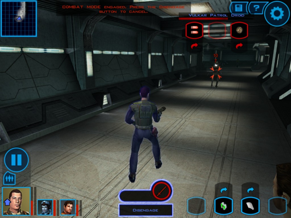KOTOR, come è noto tra gli appassionati,è considerato uno dei migliori giochi ambientati nell’universo di Star Wars, caratterizzato da un’ottima ambientazione e da una profonda crescita del personaggio e anche la versione iPad non si smentisce. In esso abbiamo «personaggi, creature, veicoli e pianeti unici, la possibilità di usare la Forza con 40 differenti poteri, più quella di costruire la propria spada laser. Avventure nelle caratteristiche locations di Star Wars, incluso Tatooine e Kashyyyk il mondo dei Wookie (la razza di Chewbecca)». Potremo scegliere tra nove personaggi completamente personalizzabili inclusi Twi’leks, droidi ed Wookiees, viaggiare in nove pianeti con l’astronave Ebon Hawk. L’interfaccia è stata modificata per rispondere alla particolarità dell’iPad , lo schermo touch.