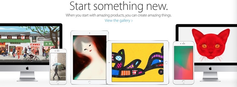 “Start something new” si presenta come una vetrina di creazioni artistiche realizzate con prodotti Apple come iPhone 6, iPhone 6 Plus, iPad Air 2, and iMac. Apple dedica uno spazio anche agli artisti e alla loro attività ed uno alla presentazione delle applicazioni utilizzate per le creazioni (tra queste Procreate, VSCO Cam, iDraw, Waterlogue e Brushes 3). Vengono presentati, ad esempio, l’artista giapponese Nomoco e i suoi dipinti digitali realizzati con iPad Air 3 e l’app Brushes 3. E assieme al pittore trovano uno spazio sul sito “Start Something New” anche dei fotografi e dei video maker.