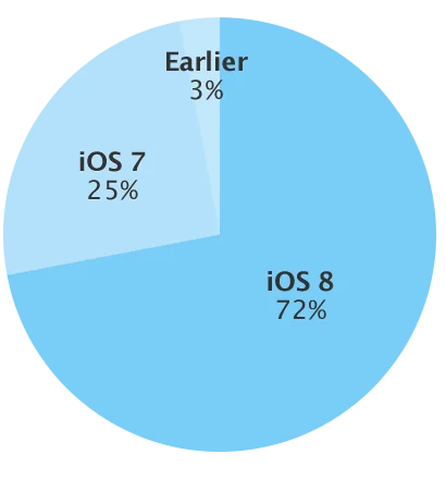 Nel giorno in cui si scopre che Android Lollipop è installato solo sull’1,6% dei dispositivi di casa Google, Apple rilascia le statistiche su iOS 8: è attualmente è in forza sul 72% dei dispositivi mobili di casa Cupertino. Una differenza abissale, certamente dovuta alla frammentazione Android, totalmente contrapposta all’ecosistema iOS.