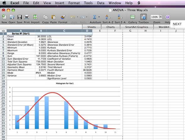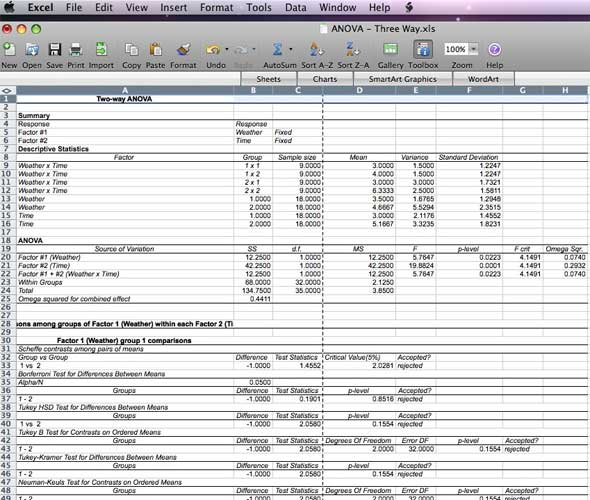 Per impostazione predefinita, infatti, Excel implementa un numero limitato di funzionalità per la gestione dei dati e per l’analisi statistica. La possibilità di eseguire calcoli cella per cella in maniera interattiva permette di compiere matematiche di base e di risolvere problemi semplici. Purtroppo, l’interattività influisce negativamente sulla riproducibilità dei risultati, poiché generalmente non c’è modo di ricordare ciò che è stato fatto calcolando il risultato. Se nel corso dei calcoli si compie un errore, bisogna ricominciare tutto daccapo. à dunque impossibile usare Excel per seri compiti di gestione dei dati o di analisi statistica. Il pacchetto che risolve il problema si chiama StatPlus:Mac LE, funziona con Mac OS X 10.4.11 o 10.5.x (PowerPC o Intel) ed è disponibile in più lingue (italiano compreso) e può essere scaricato in una versione ridotta dal sito di Analyst Soft.