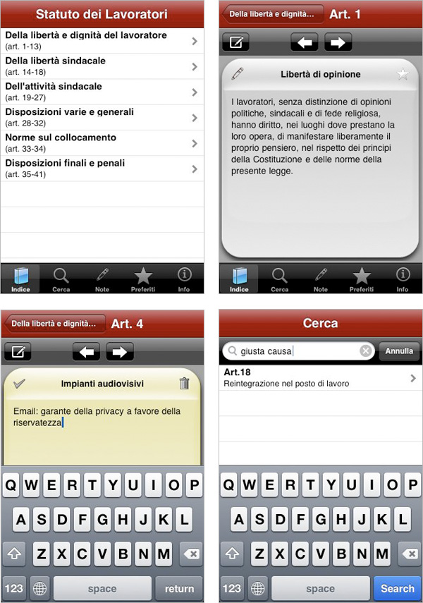 Dopo le edizioni digitali dei Codici, gli sviluppatori di iLex invitano a festeggiare l’imminente Primo Maggio con lo Statuto dei Lavoratori in versione digitale per iPhone e touch. La norma fondamentale dei diritti dei lavoratori è distribuita gratuitamente a partire da questa pagina di App Store.