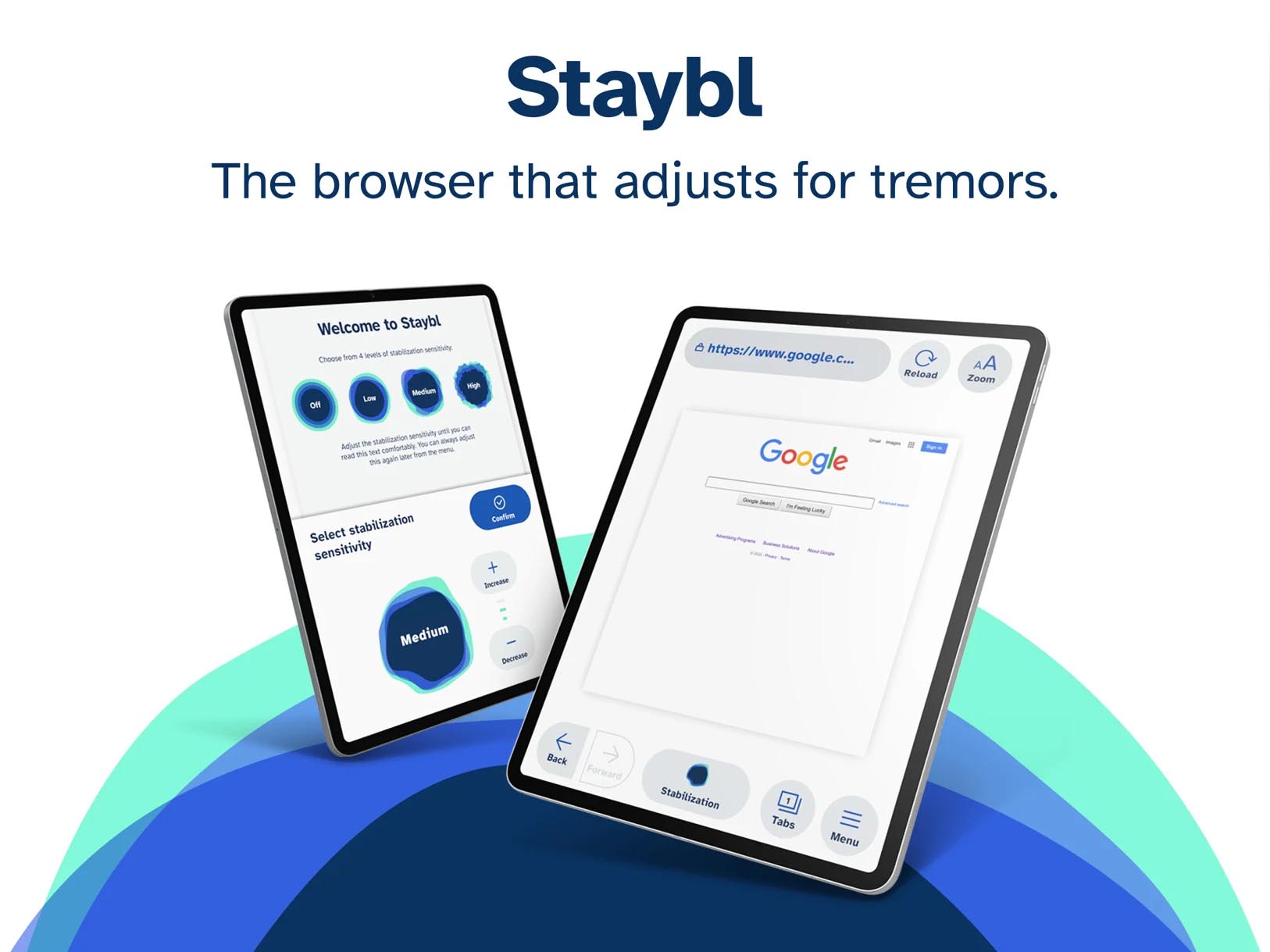 Staybl sfrutta l’accelerometro integrato nell’iPad per individuare il movimento del dispositivo per via dei tremori, rispondendo di conseguenza con movimenti in direzione opposta nel browser integrato; è in altre parole stabilizzato lo schermo, permettendo all’utente di interagire con le pagine web e semplificare la navigazione. L’app tiene conto del tremore alle mani, eliminando gesture quali lo swipe e e lo slide durante la navigazione, e mostra anche pulsanti più grandi e più facili da premere, permettendo di personalizzare varie impostazioni che tengono conto di differenti oscillazioni e contrazioni durante il giorno.