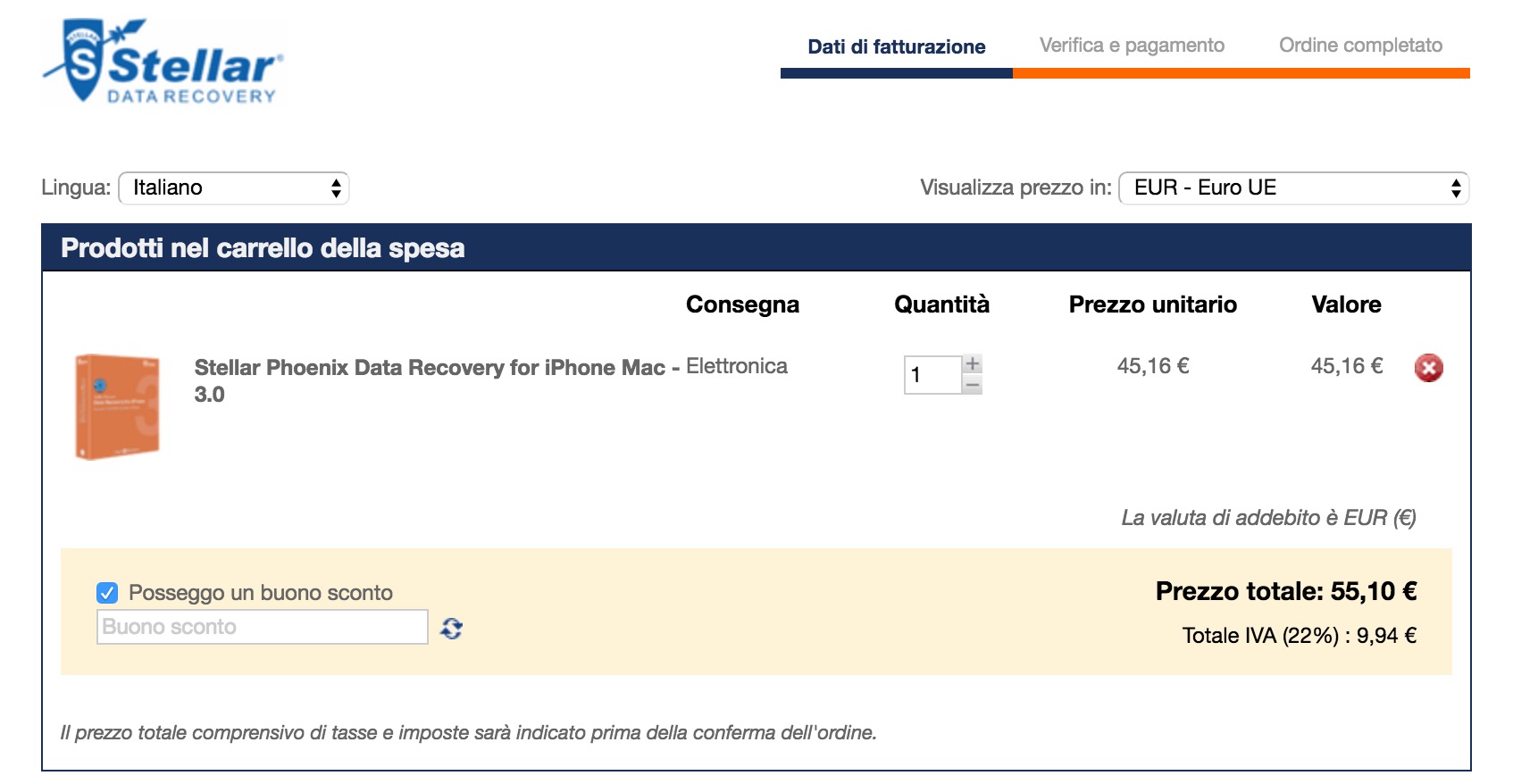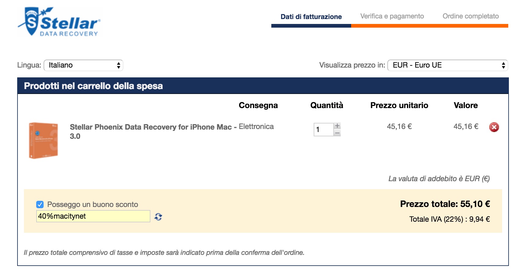 Stellar Phoenix Data Recovery per iPhone al 40% di sconto. Questa l’offerta sul software per Mac, già apprezzato dalla nostra redazione nella versione di recupero file su Mac e PC Windows, che recupera documenti, messaggi allegati, contatti, note, eventi in calendario e molto altro ancora da iPhone.