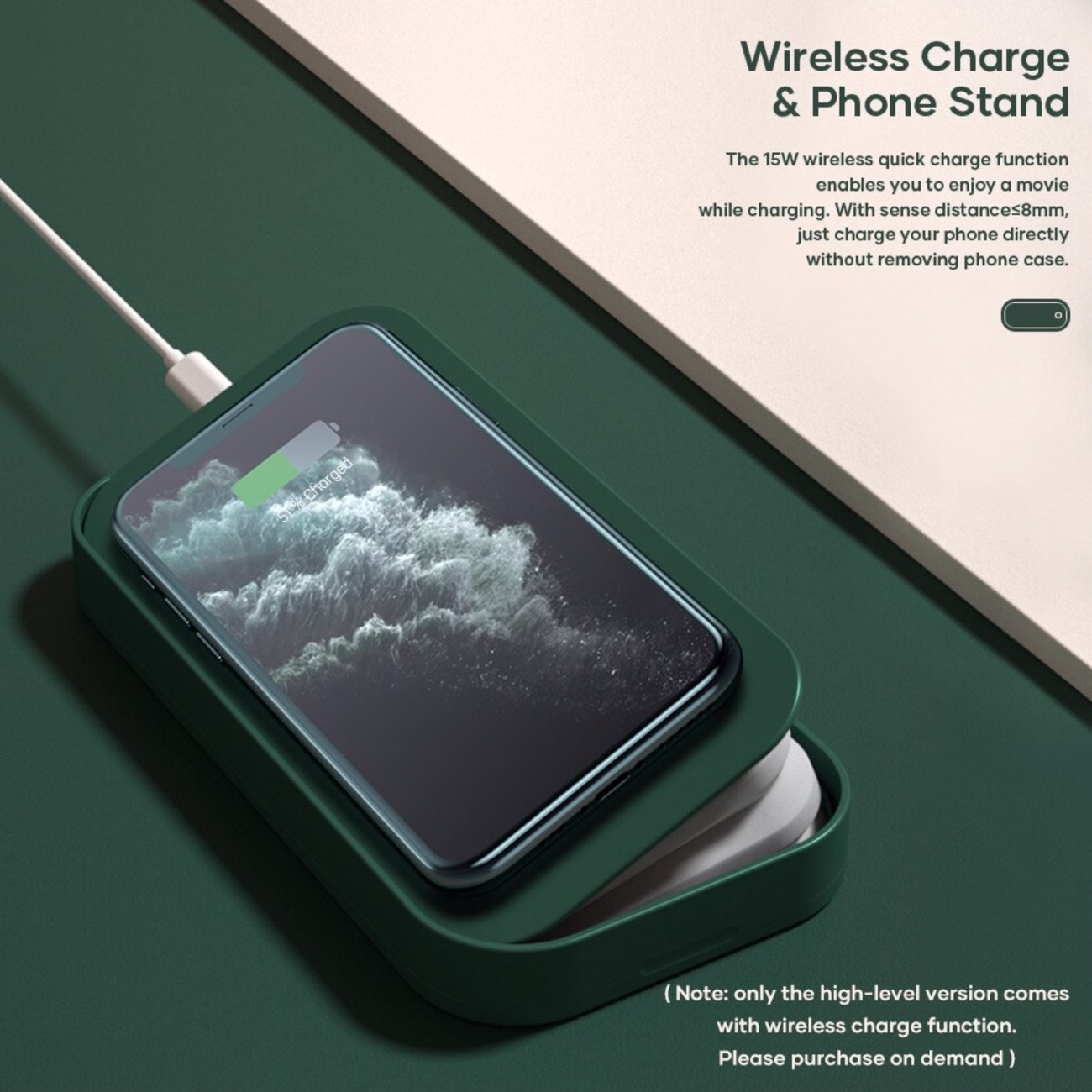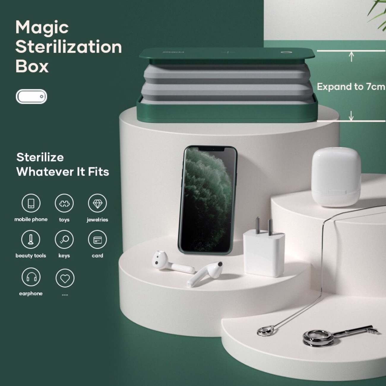 Anziché limitarsi a comprare una piastra per ricaricare i telefoni senza fili, con questa soluzione si ottiene un oggetto un po’ più ingombrante che però ha la duplice funzionalità di sterilizzare tutti gli oggetti che vi si inseriscono all’interno. Ha un vano espandibile fino a 7 centimetri di altezza quindi può accogliere diversi dispositivi come giocattoli, gioielli, chiavi, schede, cuffie e altri piccoli oggetti, incluso lo smartphone stesso.
