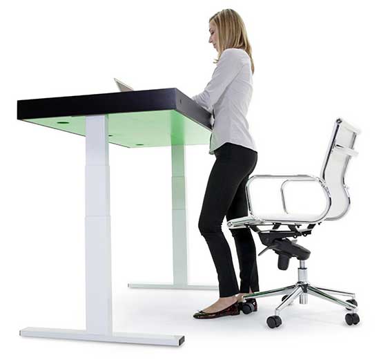 Stir Kinetic Desk è un progetto di ex dipendenti Apple (Il CEO della Stir è JP Labrosse, tra i primi 35 impiegati della divisione iPod), Disney e altre società ancora che hanno pensato di rivoluzionare le scrivanie che normalmente si trovano negli uffici. Il tavolo in questione integra un motore che consente di regolare dinamicamente l’altezza, cambiandola in base alle proprie necessità, semplicemente richiamando un comando da un touch screen; è possibile lavorare sia in piedi, sia seduti.