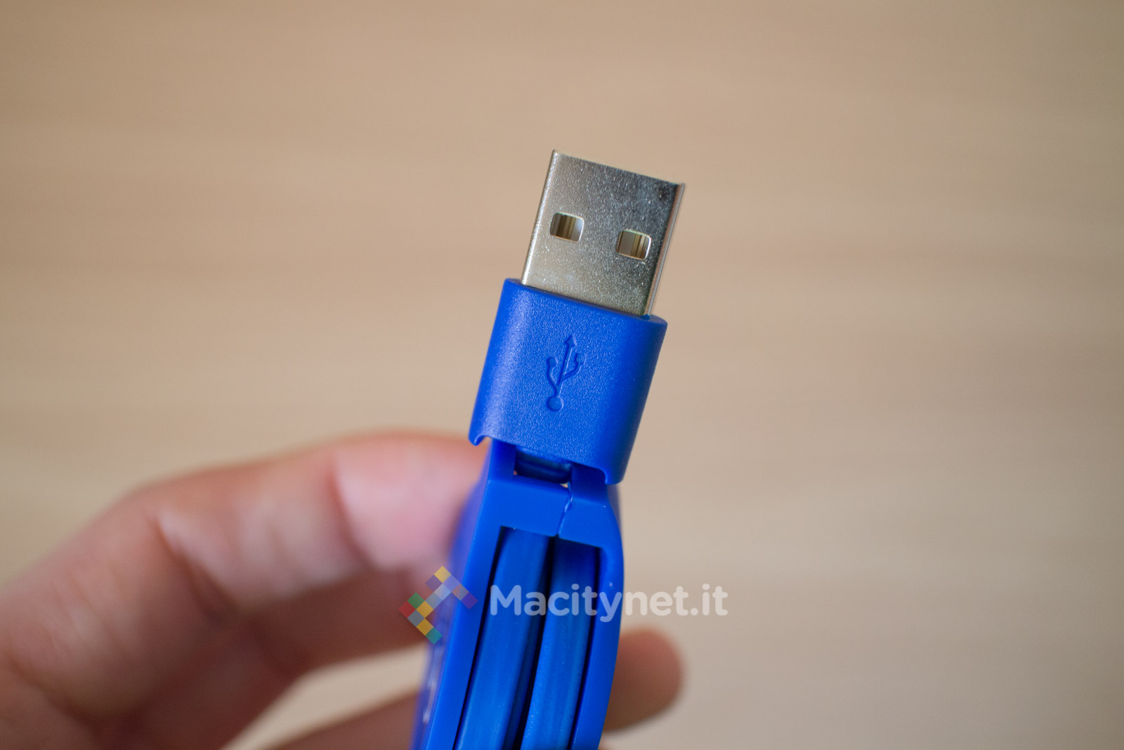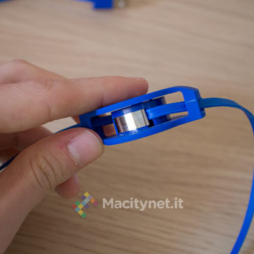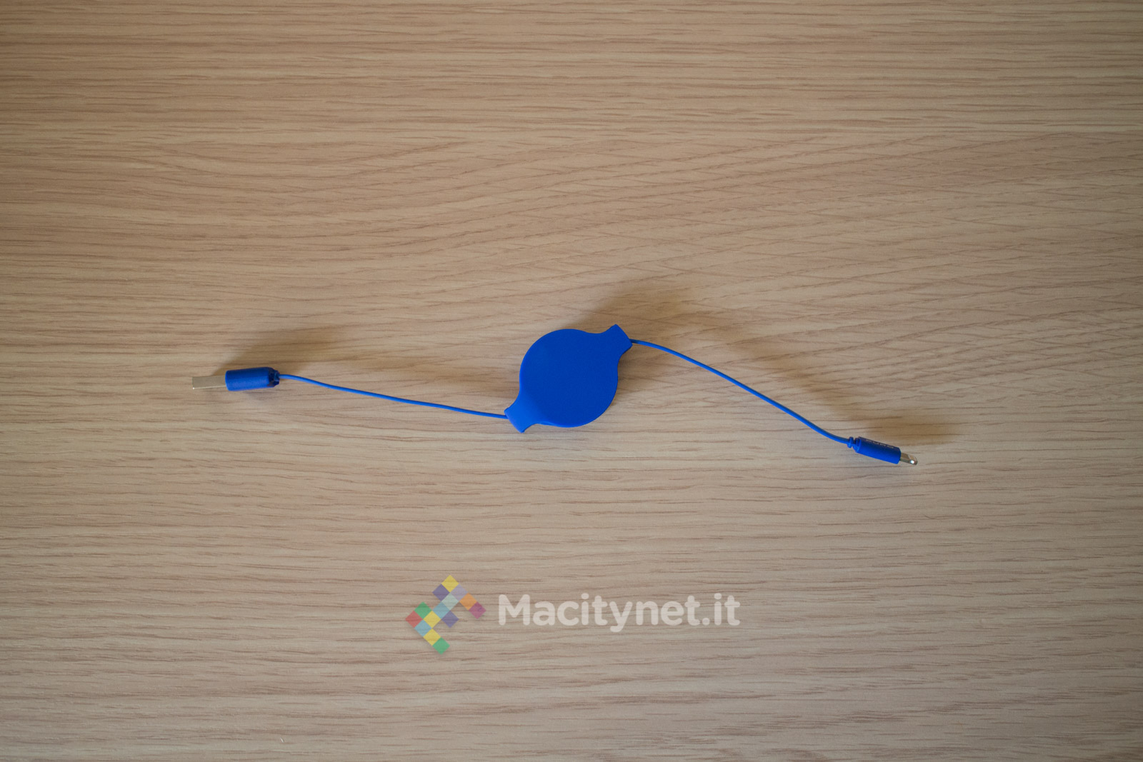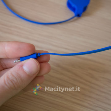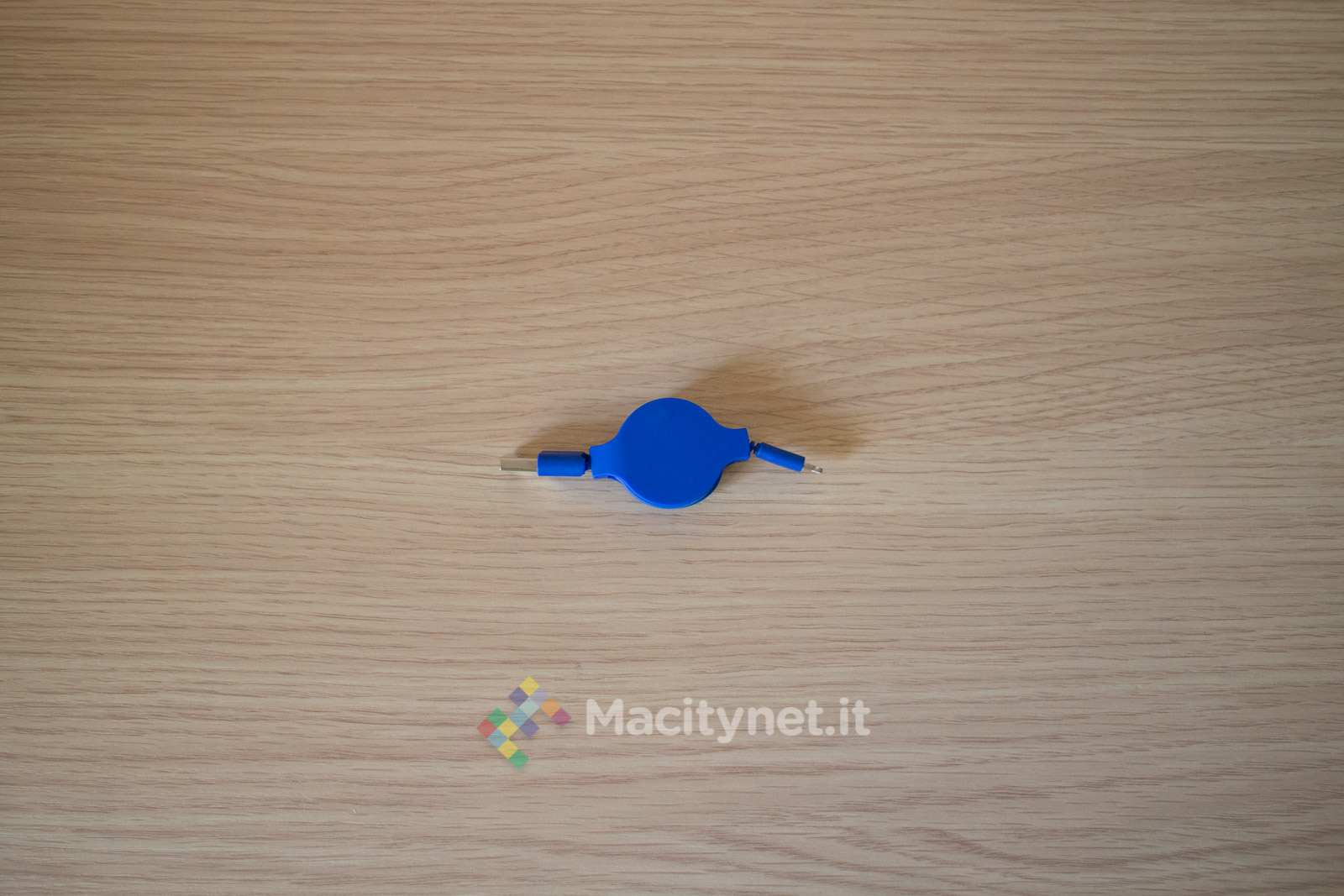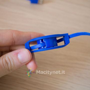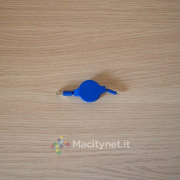 Al massimo dell’estensione, il cavo è lungo intorno ai 78 centimetri. Segnaliamo la possibilità di poterlo usare anche a diverse lunghezze, potendo così adattarlo alle proprie esigenze. Durante l’estensione si sentiranno infatti dei piccoli “clack” che ci segnaleranno il raggiungimento di uno scalino che semplicemente blocca il cavo, evitandone il riavvolgimento.