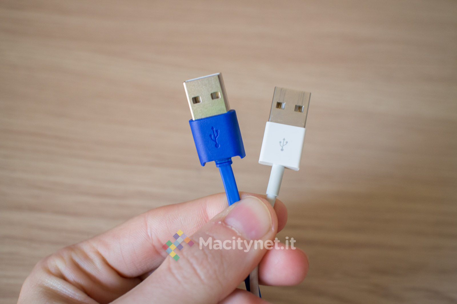 I connettori sono anch’essi in plastica satinata e diversamente da altri di terze parti, sono solo di poco più grandi di quelli originali Apple. Specialmente il connettore Lightning è sufficientemente piccolo per funzionare con qualsiasi custodia, anche con quelle che spesso non vanno d’accordo con cavi dotati di connettori più grandi.