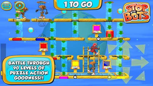 Stop The Bots è un interessante mix tra rompicapo e platform, in cui il giocatore controllerà direttamente un astronauta nel tentativo di rimettere in ordine casse colorate all’interno dei rispettivi alloggiamenti, mentre indirettamente si influirà sulle azioni compiute dai vari robot presenti sulla scena. Ed infatti, ogni movimento a schermo compiuto dal personaggio principale verrà replicato esattamente dai robot presenti all’interno dell’area di gioco. Mentre in alcune circostanze questo meccanismo sarà di estremo aiuto per completare i quadri proposti, in altri risulterà addirittura di intralcio.
