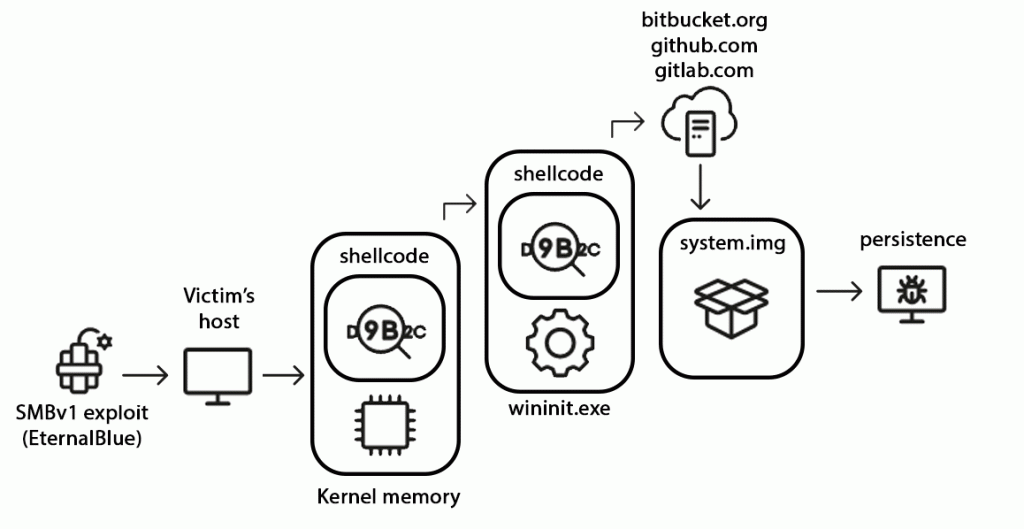 A riferirlo è Kaspersky, azienda specializzata in sicurezza e antivirus che ha ribattezzato il malware StripedFly, spiegando che è una variante dell’exploit EternalBlue che ha portato alle pandemie di WannaCry e NotPetya, oltre a diverse altre epidemie di ransomware meno devastanti, sfruttate per anni per infiltrarsi in PC di mezzo mondo.