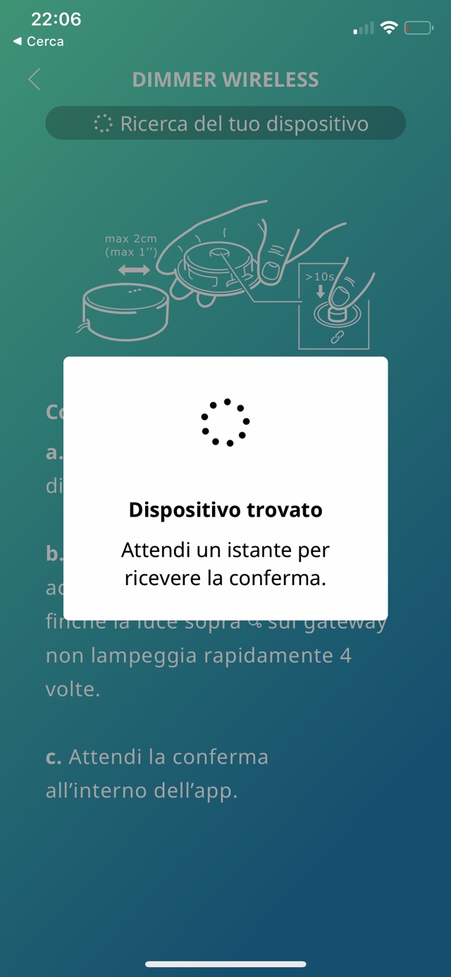 Qui sotto trovate tutte le schermate che abbiamo scattato durante l’operazione di abbinamento tra alimentatore, gateway e dimmer… la sequenza è autoesplicativa.