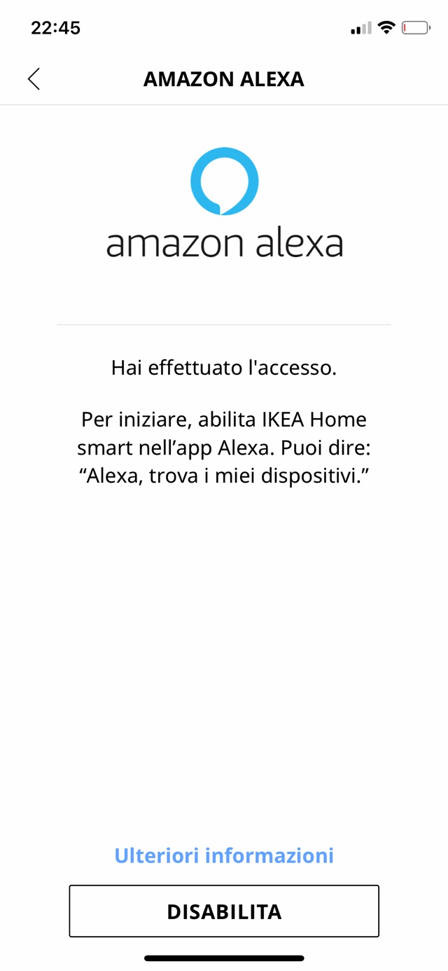 Alla fine dell’operazione abbiamo attivato oltre che HomeKit anche le skill Alexa per poter comandare tutto da Amazon Echo oltre che da iPhone, iPad, Mac, Apple Watch, Siri e naturalmente anche direttamente dai dimmer Ikea quando in casa non ci sono aggeggi elettronici.