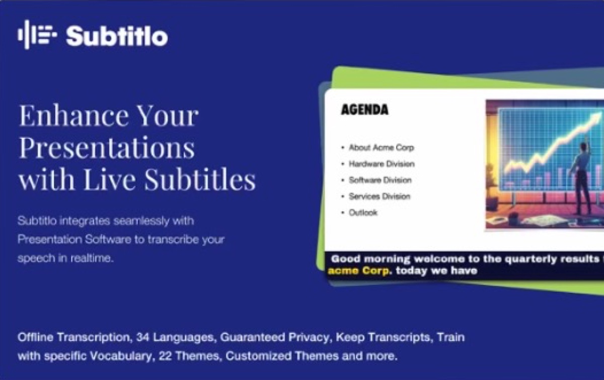 Usando questa semplice app possiamo far apparire i sottotitoli in tempo reale sulla parte inferiore dello schermo mentre parliamo, utile quando si stanno proiettando slide, consentendo anche a chi ha difficoltà con l’udito di capire quello che sta vedendo.