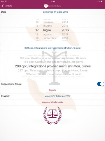 Particolarmente utile per qualsiasi avvocato, la possibilità di inserire i termini così calcolati direttamente nel calendario. Suite Avvocato consente, dopo il calcolo di un termine, di inserire direttamente la data ottenuta nel calendario, scegliendo il nome dell’evento, eventuali note e selezionando anche il giorno in cui si desidera essere avvisati. In una professione fatta di scadenze e avvisi, tale possibilità facilità, non di poco, l’organizzazione della propria agenda.
