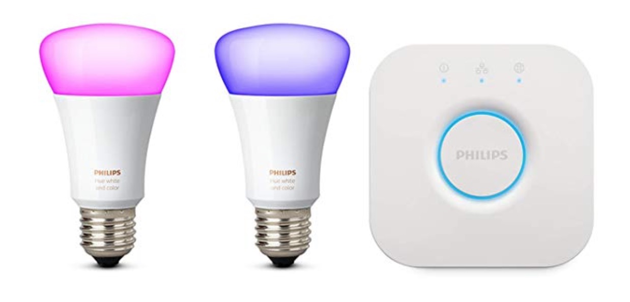 Quello che è in offerta oggi è il kit di base che prevede un gateway Hue, uno scatolotto quadrato con gli angoli arrotondati che potete collegare via ethernet al vostro router insieme a due lampade colore White and Color che vi permettono non solo di accendersi e spegnersi con l’automazione di scene ma anche di colorarsi secondo il vostro “mood” o la vostra necessità di concentrazione o relax.