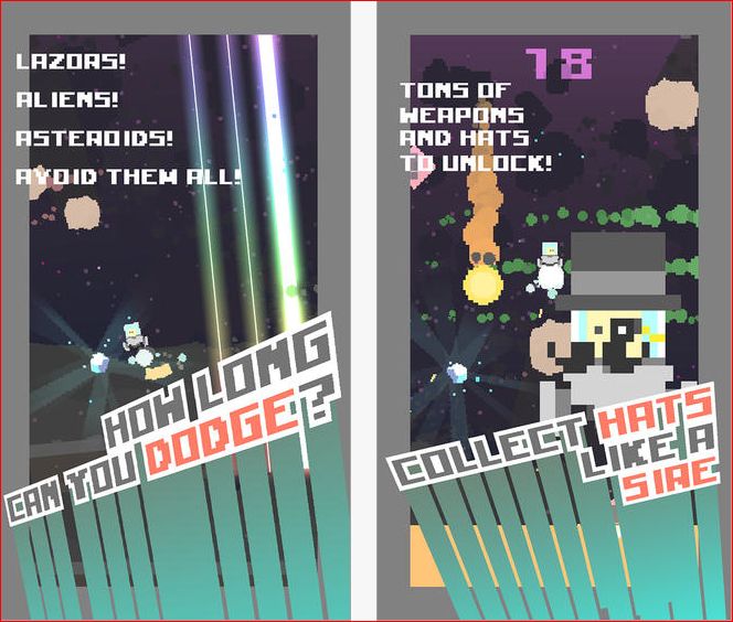 C’è solo una modalità di gioco in Super Pixelander, all’interno della quale sopravvivere. Sebbene il fondale di sottofondo sia soltanto uno, ogni partita risulta sempre diversa e frizzante, dato che i nemici calcheranno la scena in moto del tutto casuale. Si avrà così la sensazione che ogni tentativo sia particolarmente originale e diverso dal predecessore. Missili, raggi laser, meteoriti ed altri elementi di disturbo attraverseranno la scena orizzontalmente, mentre l’utente dovrà solo badare a schivare questi malus. I controlli sono incredibilmente semplici, ma efficienti. Per spostare il modulo lunare, infatti, basta inclinare il dispositivo per indicare la direzione, che verrà però intrapresa solo azionando i propulsori con semplici tap a schermo. Ovviamente, quando la scena di gioco diverrà ricolma di malus, sarà davvero difficile mantenere la calma e controllare il veicolo lunare con la massima precisione. Insomma, ogni partita richiede anche una buona dose di fattore C per raggiungere un punteggio discreto.