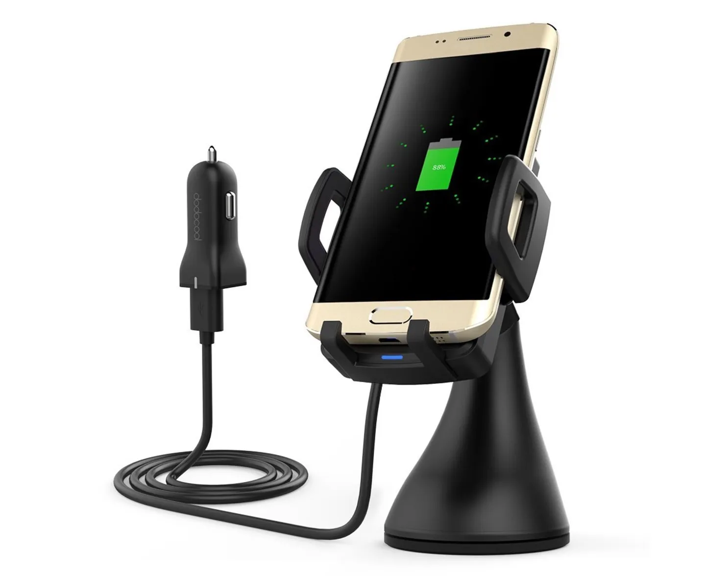 Si tratta di un supporto che si fissa tramite una ventosa al parabrezza o al cruscotto dell’automobile oppure, sfruttando un accessorio incluso in confezione, alla griglia di ventilazione dell’auto. Ha una morsa estensibile che abbraccia e blocca saldamente praticamente tutti gli smartphone e phablet attualmente in commercio e, grazie alla piastra di ricarica ad induzione, può ricaricarlo senza dover collegare il cavo alla presa del telefono: in questo modo basterà bloccarlo al supporto per veder avviarsi istantaneamente la ricarica.