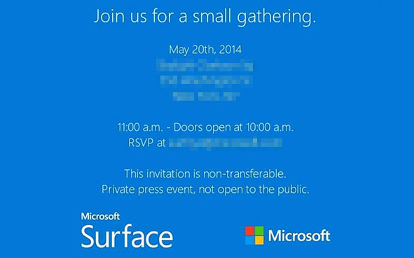 Il prossimo 20 maggio Microsoft terrà un evento a New York durante il quale potrebbe svelare finalmente il Surface Mini. L’azienda sarebbe al lavoro da circa un anno sulla versione a schermo ridotto del suo tablet proprietario e le informazioni e gli indizi portano a pensare che Redmond sia pronta a svelare il Surface Mini con questo nuovo evento. L’invito si apre con la frase “Unitevi a noi per un piccolo incontro”, con la parola piccolo ad insinuare la natura del prodotto, mentre il logo del Microsoft Surface appare in bella mostra in fondo all’immagine.