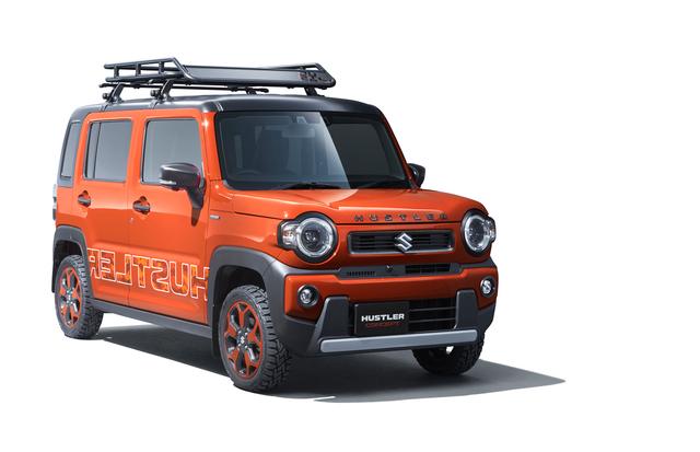 Suzuki propone in occasione del Salone di Tokyo due nuove interpretazioni della Hustler, crossover ultracompatta che raccoglie un forte successo nel mercato interno giapponese. La prima variante assume un’inedita veste, con particolari accessori che permettono di personalizzare la linea conciliando stile e funzionalità e di rendere più gradevole l’uso quotidiano così come i viaggi nel tempo libero. La seconda variante mette l’accento su alcune caratteristiche tipiche del progetto Hustler, sempre colorato e raffinato, enfatizzando aspetti quali la robustezza e la forza. Ciò avviene attraverso dettagli quali un massiccio portapacchi e con il ricorso a nuovi colori, sticker e wrapping del tetto, che danno al look un tocco modaiolo e giocoso.