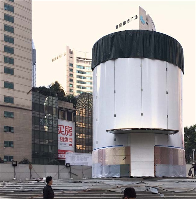 Per il futuro Apple Store di Chongqing che sarà inaugurato a metà dell’anno, la Mela ha ripreso il famoso design a forma di cilindro dell’Apple Store di Shanghai. L’edificio (che si trova sulla Guotai Plaza) è in costruzione da quasi un anno ed è in fase di completamento. Ora è stata rimossa la matrice metallica che mascherava la struttura di vetro alta 9 metri, quella che sarà la porta d’accesso all’ingresso sotterraneo.