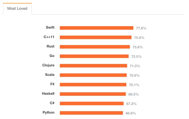 Circa il 78% dei programmatori interpellati in questo momento sfrutta Swift, ed è desideroso di continuare a usarlo. Il dato emerge da un sondaggio di Stack Overflow che ha interpellato 26.000 visitatori del suo sito, sviluppatori di 157 paesi diversi, anche se non tutti quelli che hanno risposto sono programmatori che sfruttano Swift.