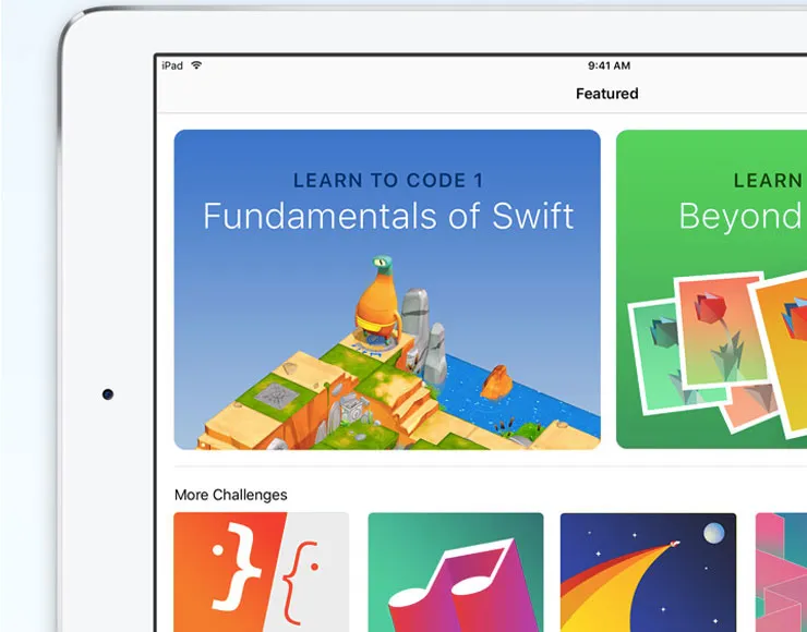 La libreria di lezioni di programmazione sviluppate da Apple aiuta gli studenti a imparare concetti chiave dello sviluppo software, come inviare comandi, creare funzioni, eseguire loop e usare variabili e codice condizionale, permettendo loro di acquisire progressivamente sicurezza e nuove capacità.