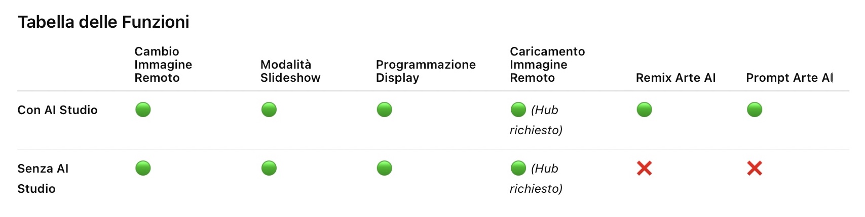 Il valore aggiunto del prodotto è la nuova piattaforma AI Studio, basata su tecnologia NanoBanana*. Questa suite amplia radicalmente le possibilità di utilizzo, permettendovi non solo di esporre arte, ma di crearla direttamente dalla cornice.