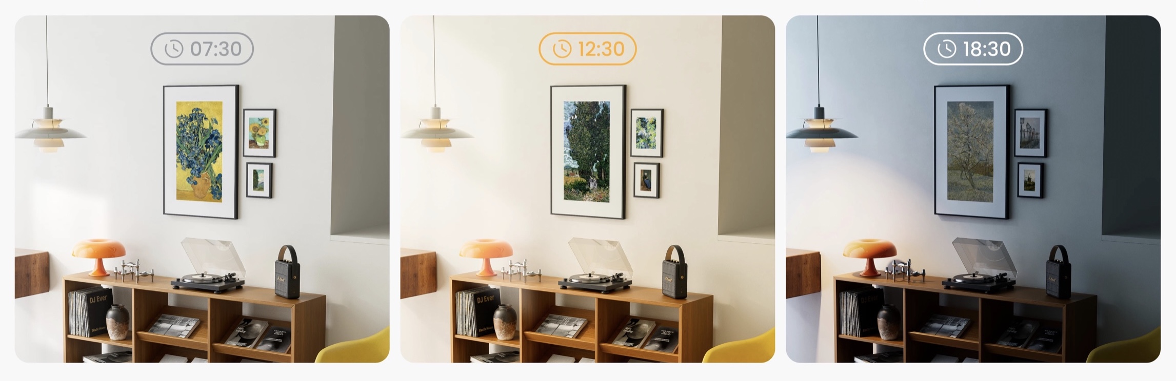 Ogni modello può essere posizionato sia in verticale sia in orizzontale, adattandosi automaticamente all’opera e allo spazio circostante. Attraverso l’app SwitchBot è possibile caricare fino a 10 immagini in locale o sincronizzarne di nuove in pochi istanti.
