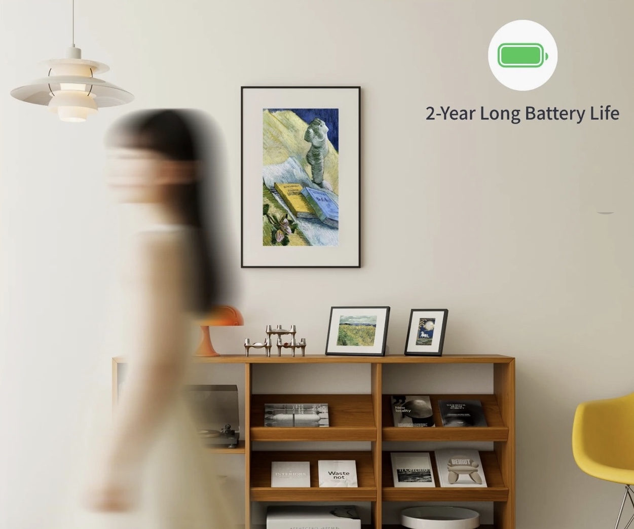 Una delle caratteristiche distintive del nuovo SwitchBot AI Art Frame è la totale assenza di cavi visibili. Grazie alla batteria integrata da 2000 mAh, che può durare fino a due anni con un cambio immagine a settimana, il dispositivo mantiene un’estetica pulita e minimale, perfetta per qualsiasi ambiente domestico.