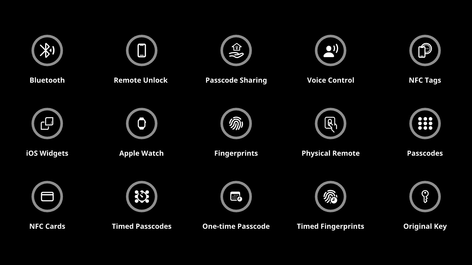Oltre alle impronte digitali, Lock Pro offre 15 diverse soluzioni di sblocco con generazione passcode monouso o temporanee, sblocco da remoto dal telefono, utilizzazione di comandi vocali con l’assistente intelligente preferito o semplicemente toccando lo schermo di Apple Watch.