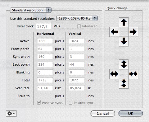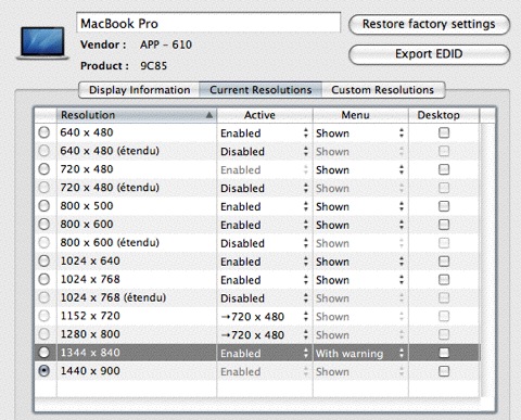 SwitchRes X 4.0 è una piccola ma preziosa applicazione shareware (14,00 euro) che consente di impostare particolari risoluzioni video. L’applicazione permette di abilitare risoluzioni “ufficialmente” non supportate, effettuare il video-mirroring, cambiare la profondità colore e molto altro ancora. L’utility è molto comoda, ad esempio se avete una TV LCD in grado di supportare l’HDTV, permette di abilitare particolari risoluzioni di dispositivi quali videoproiettori, schermi al plasma, ecc.