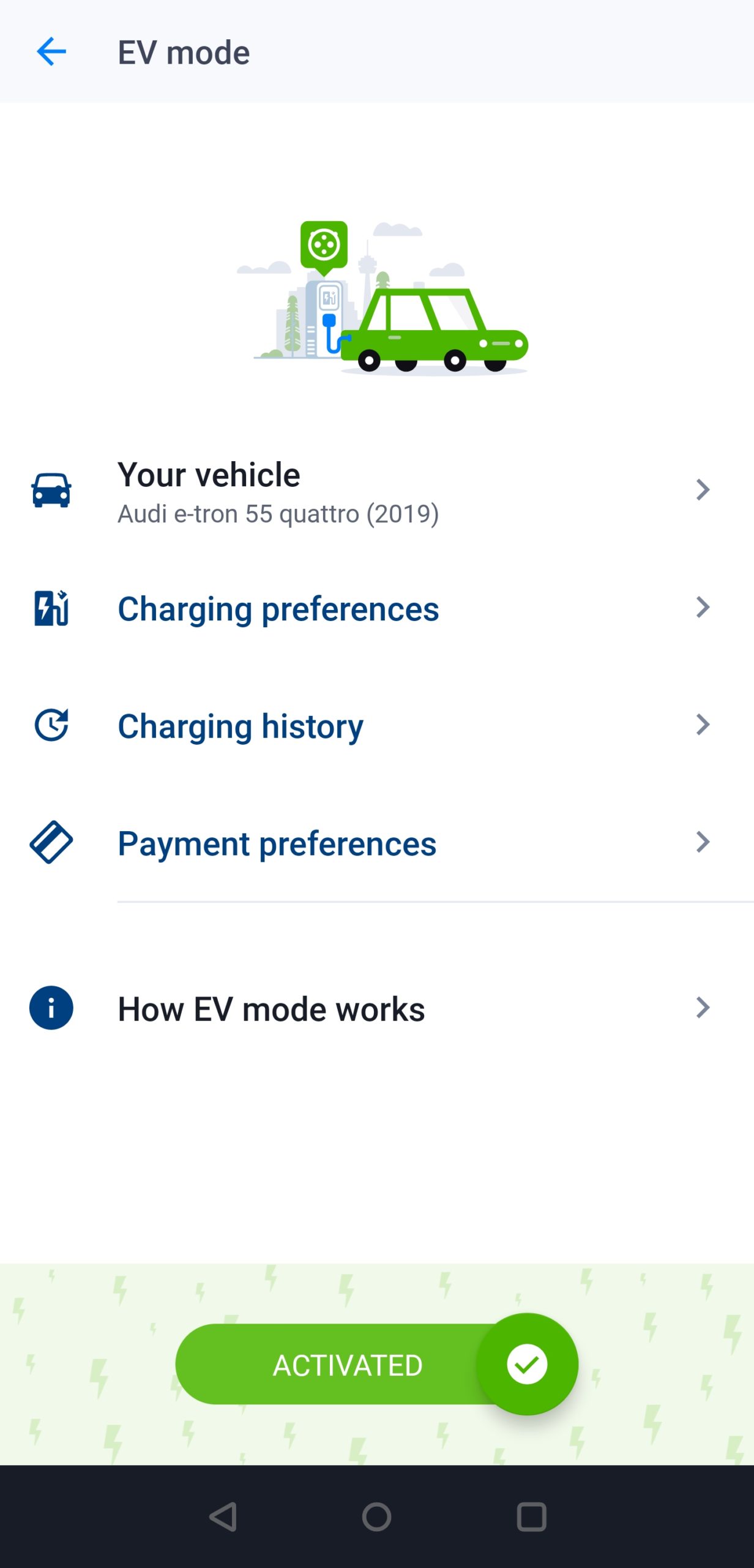 Qualsiasi utente può attivare gratuitamente EV Mode, che consente ai conducenti di veicoli elettrici di scegliere il modello della propria auto dal database di veicoli elettrici e ibridi plug-in con specifiche predefinite, come capacità di ricarica e della batteria, consumo medio e tipo di connettore, o di aggiungerlo. È anche possibile regolare tutti i parametri in base alla propria esperienza effettiva, il tutto senza dovere installare altre applicazioni o effettuare nuove iscrizioni.
