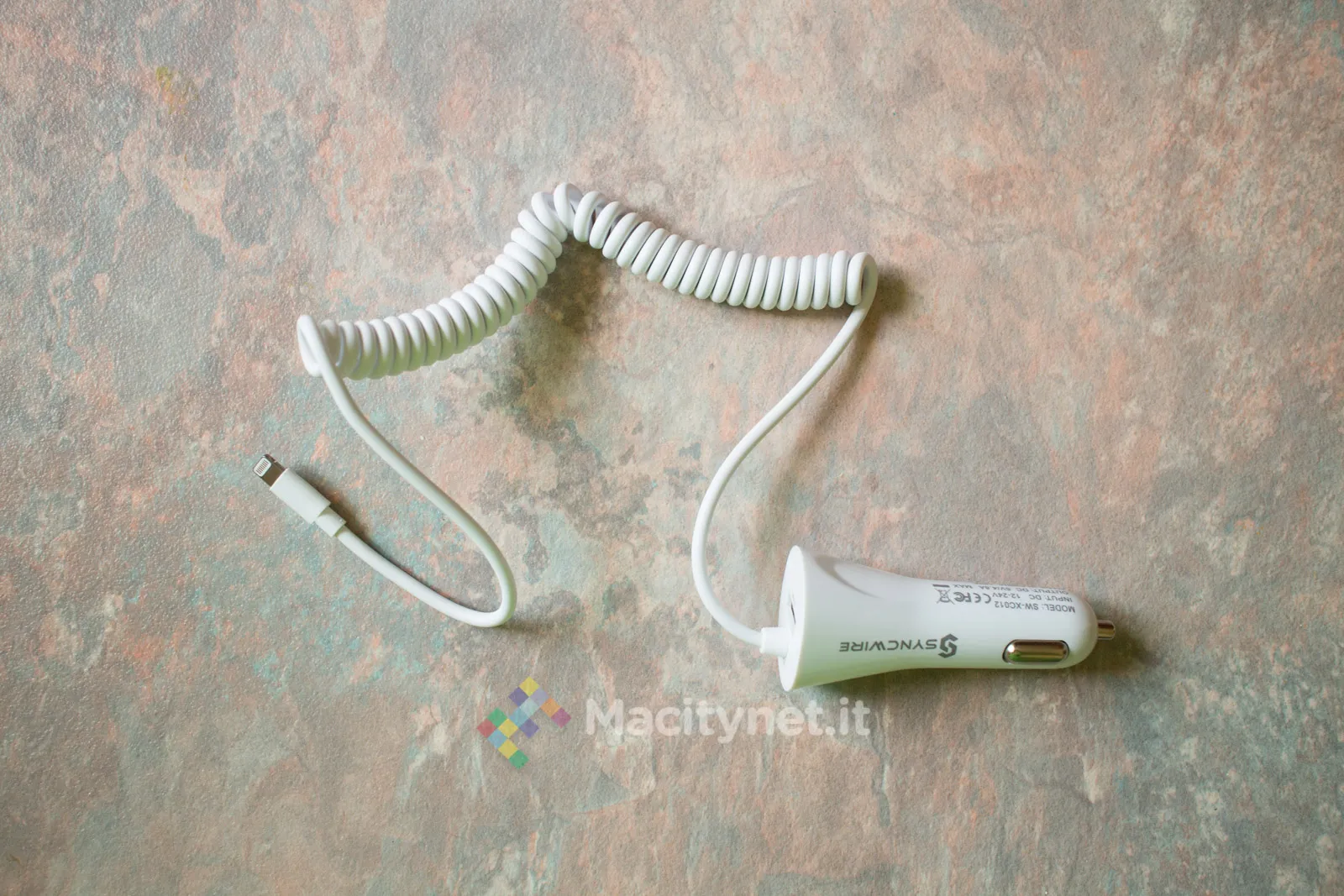 Di caricatori con cavo Lightning incorporato, sul mercato, ce ne sono diversi, ma Syncwire SW-XC012 si fa notare per il sistema a molla del cavo stesso, che non richiede l’attorcigliamento quando lo si ripone nel vano portaoggetti, evitando anche eventuali nodi.