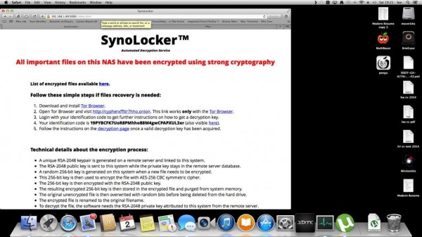 Synology ha identificato la falla utilizzata da alcuni malviventi per cifrare all’insaputa degli utenti alcuni NAS collegati in rete e chiedere un riscatto ai malcapitati. La falla sfruttata è bloccata con la patch rilasciata a dicembre del 2013 e non è presente nelle versioni successive di DiskStation Manager.