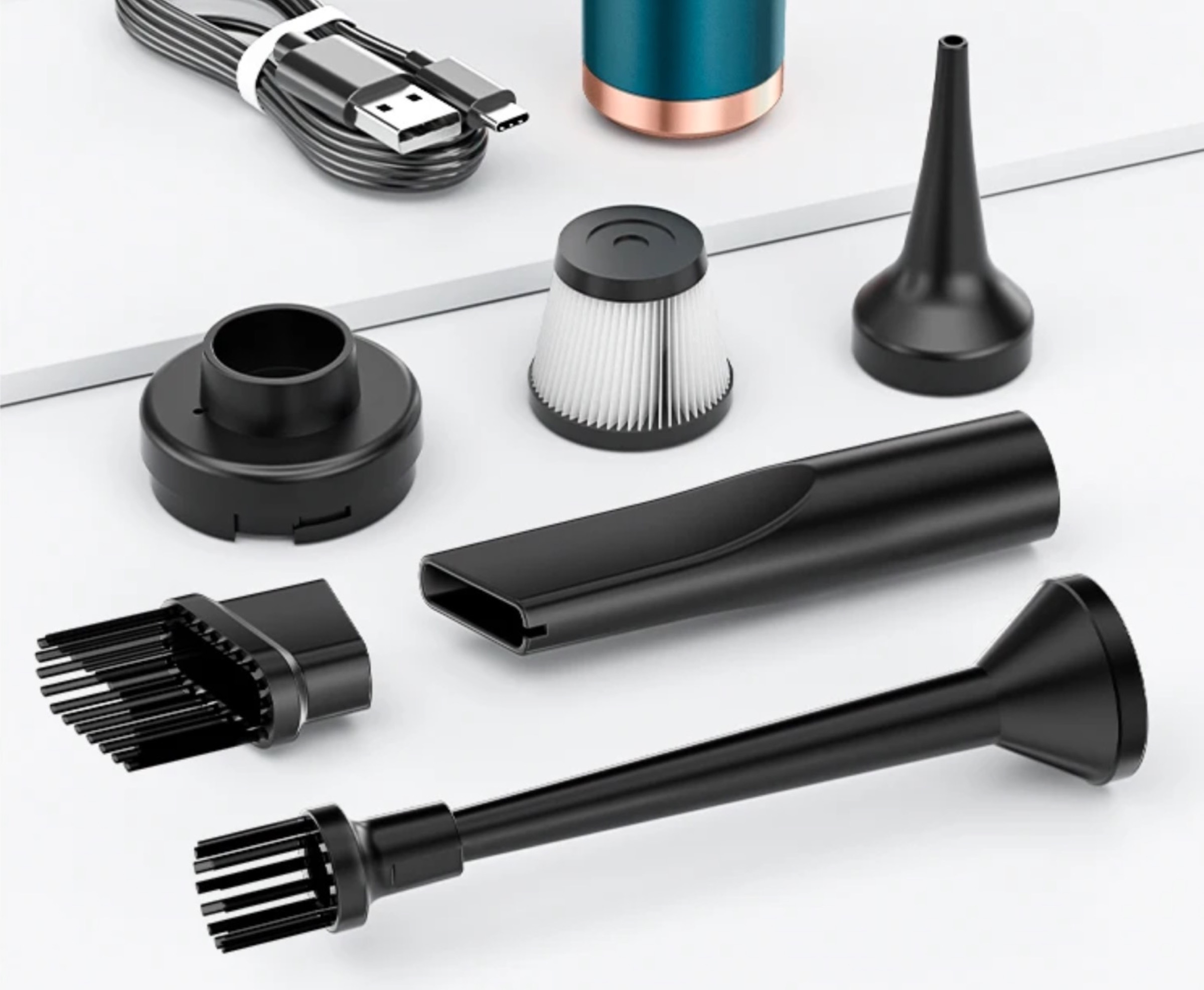 In dotazione ci sono vari beccucci, anche lunghi, che permettono di raggiungere anche gli spazi più stretti e difficili da pulire con un normale aspirapolvere, rivelandosi utile anche in altri contesti al di fuori dell’automobile.