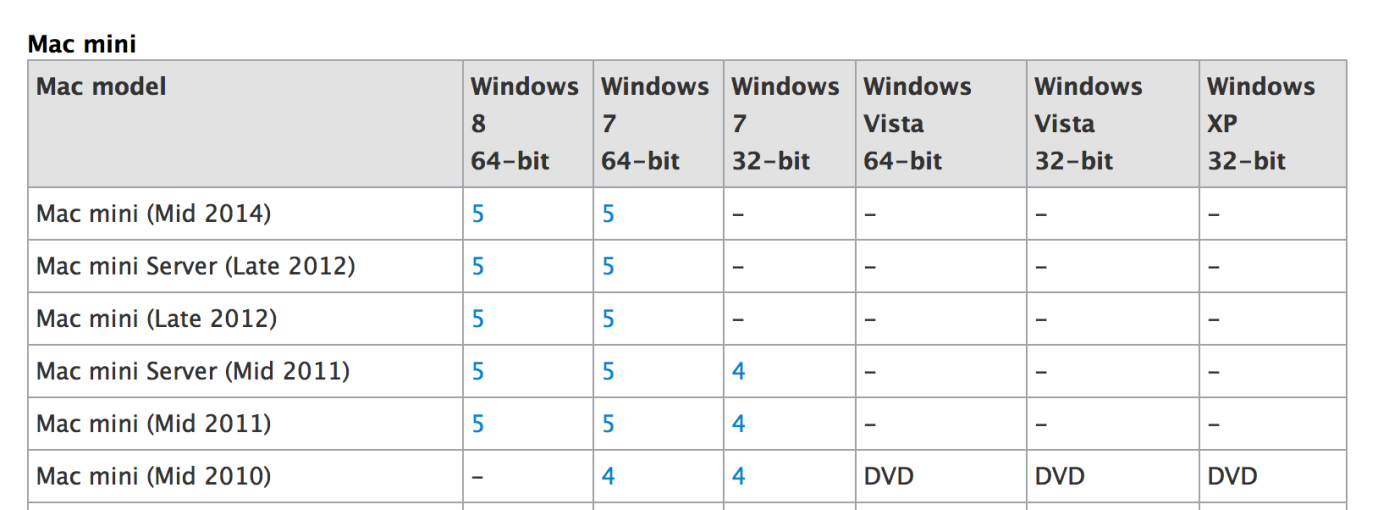 La griglia, che elenca i prodotti compatibili con BootCamp, presenta tutte le macchine più recenti, tranne il MacBook Pro Retina di oggi. Al loro posto si vedeva apparire a sorpresa un Mac mini Mid 2014, un prodotto di cui per ora non c’è traccia e non sembra che se ne possano avere neppure nelle prossime settimane. Perchè Apple abbia aggiunto questo prodotto è difficile da dire; le ipotesi possono essere due: Apple ha commesso un errore nella compilazione della tabella, oppure questo prodotto è stato messo sulla tabella di marcia e doveva arrivare o arriverà a breve.