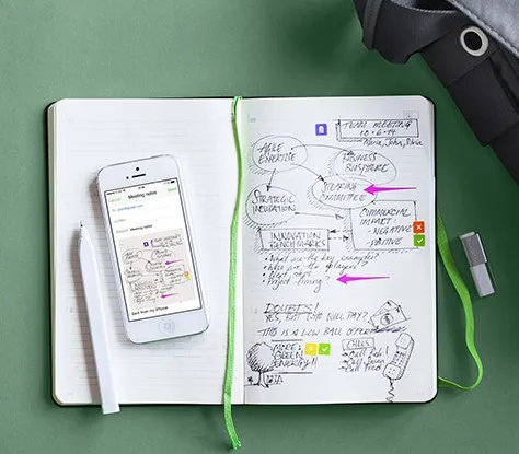 Il nuovo Business Notebook Moleskine Evernote offre all’utente la possibilità di taggare gli appunti su carta: gli smart stickers contenuti nella tasca posteriore, personalizzabili e riconoscibili all’istante dalla Document Camera di Evernote, consentono di taggare le pagine del taccuino fisico prima ancora di quello digitale. Anche la connessione, naturalmente è possibile: Evernote salva automaticamente i contatti con i dati recuperati da LinkedIn e permette di condividere i propri dati.
