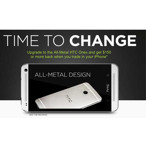 HTC ha offerto negli USA 150 dollari a chi decideva di permutare un iPhone 4s o 5 per passare a un HTC ONe All-Metal