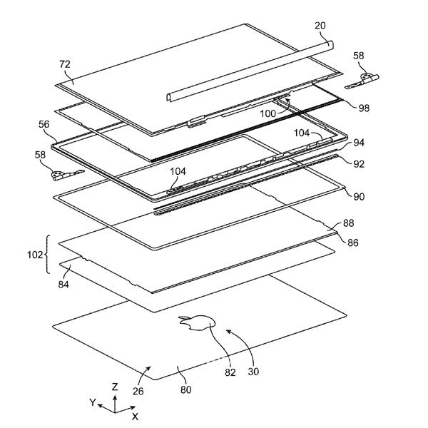 Un brevetto di Apple mostra che la società ha lavorato su un sistema che permette di richiamare funzionalità e mostrare controlli sfruttando sensori incastonati nel guscio unibody che avvolge il corpo del computer e il display.