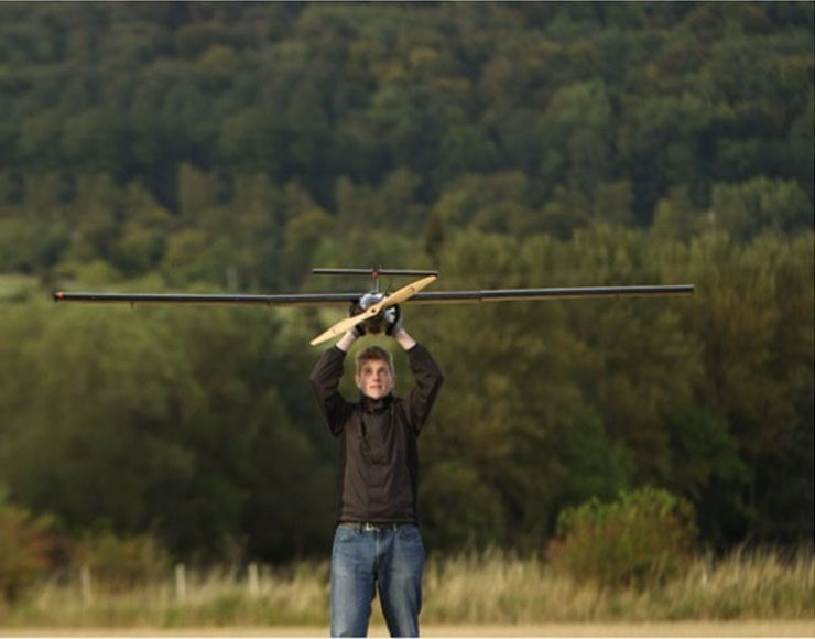 Un aeromobile a pilotaggio remoto (UAV) lanciabile manualmente e in grado di effettuare voli della durata di 10 ore e a una distanza massima di 500 km.